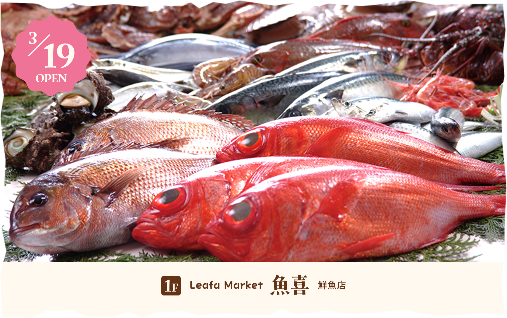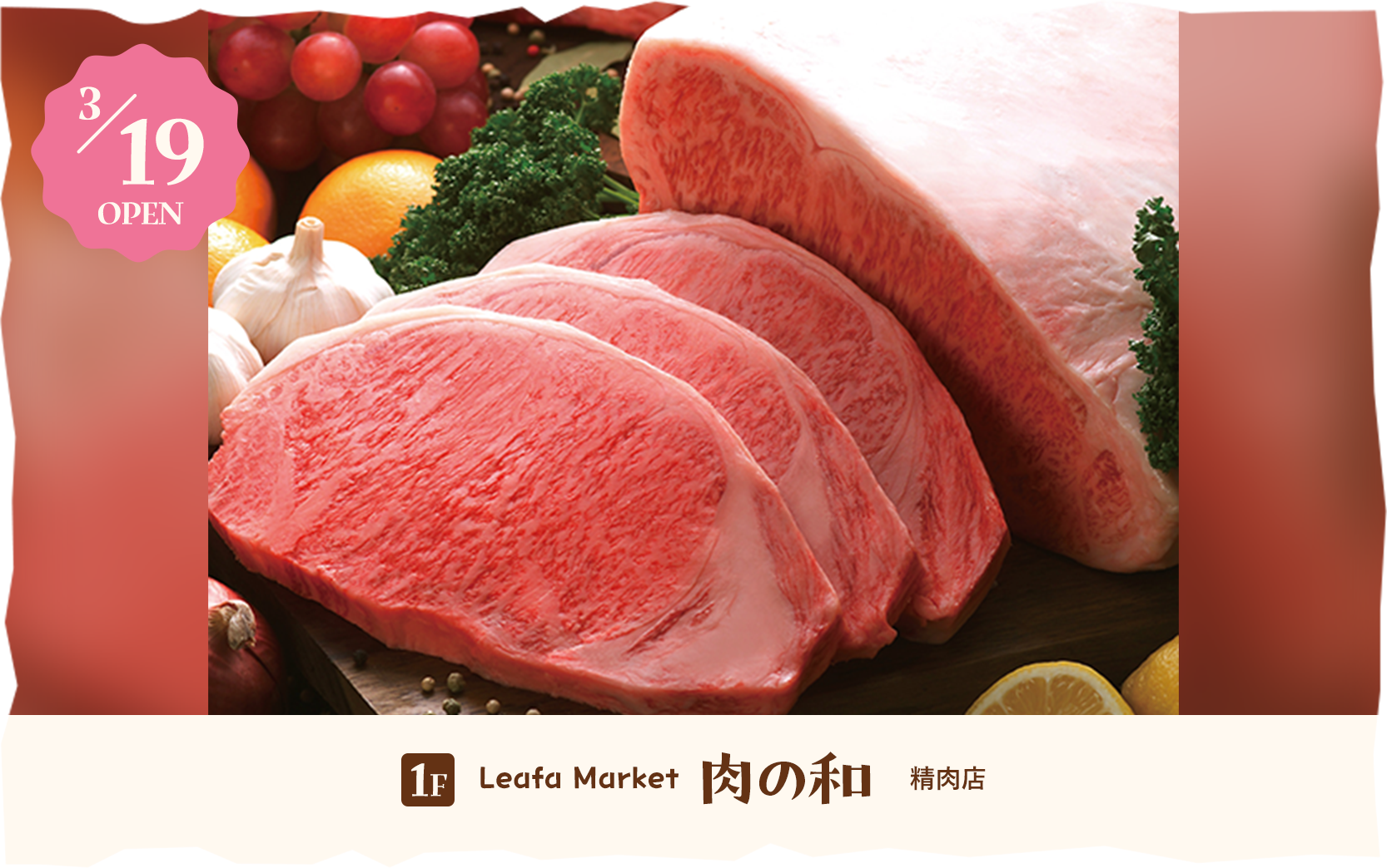 3/19(木)には、1Fに新鮮なお肉・魚・野菜など、